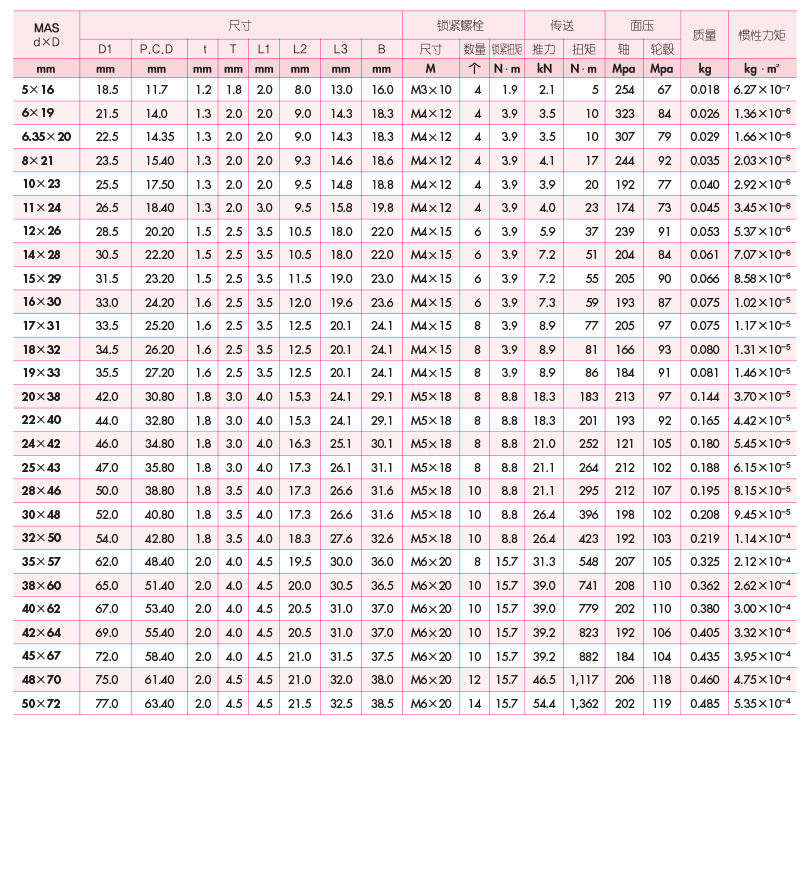 - 连接时,没有轮毂的轴向移动。